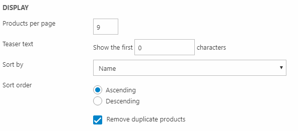 - Which property to sort the products by, and in which order - if publishing products using new indexing, these settings override the sorting created on the query and above.