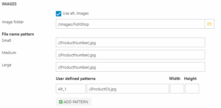 Image patterns are a way to avoid having to manually configure product media for each products. Instead, you specify an image folder and a pattern by which the product catalog should assign pictures to products.