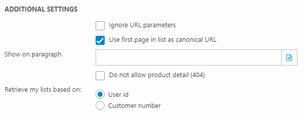 The additional settings area (Figure 6.1) is a hotpot of various settings, primarily for those using multiple product catalogs on the same page, for display caching, and for SEO purposes.