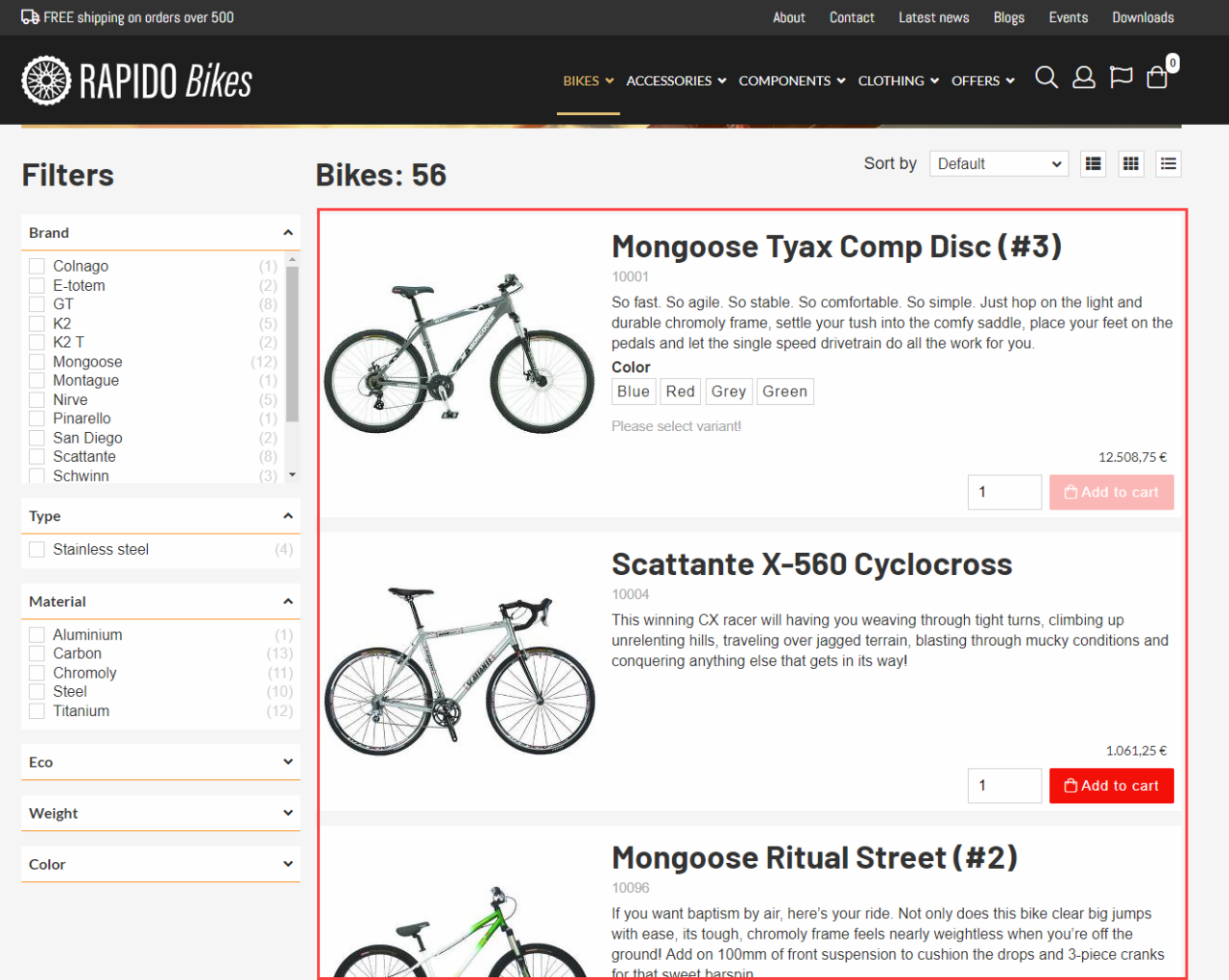 - Change between different product list templates