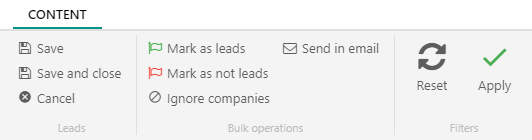 - Leads (2) – selecting a lead in the Potential leads window and clicking Mark as leads in the ribbon bar, will move the lead to this window