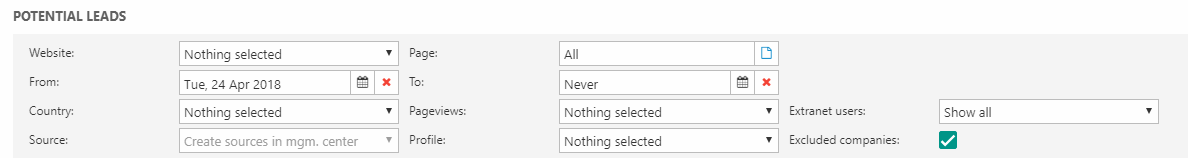 The Not leads list also includes visitors from companies in the Excluded companies list.