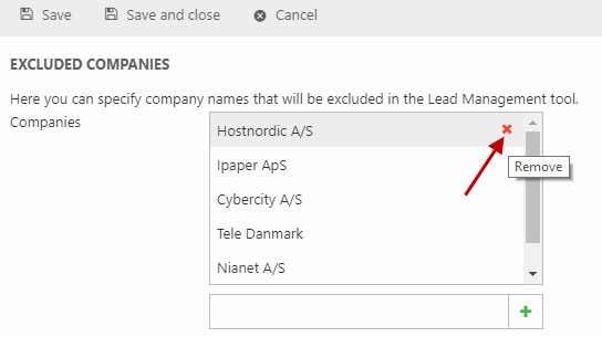 To exclude certain companies from showing up as potential leads, go to the Excluded companies area (Figure 7.1).