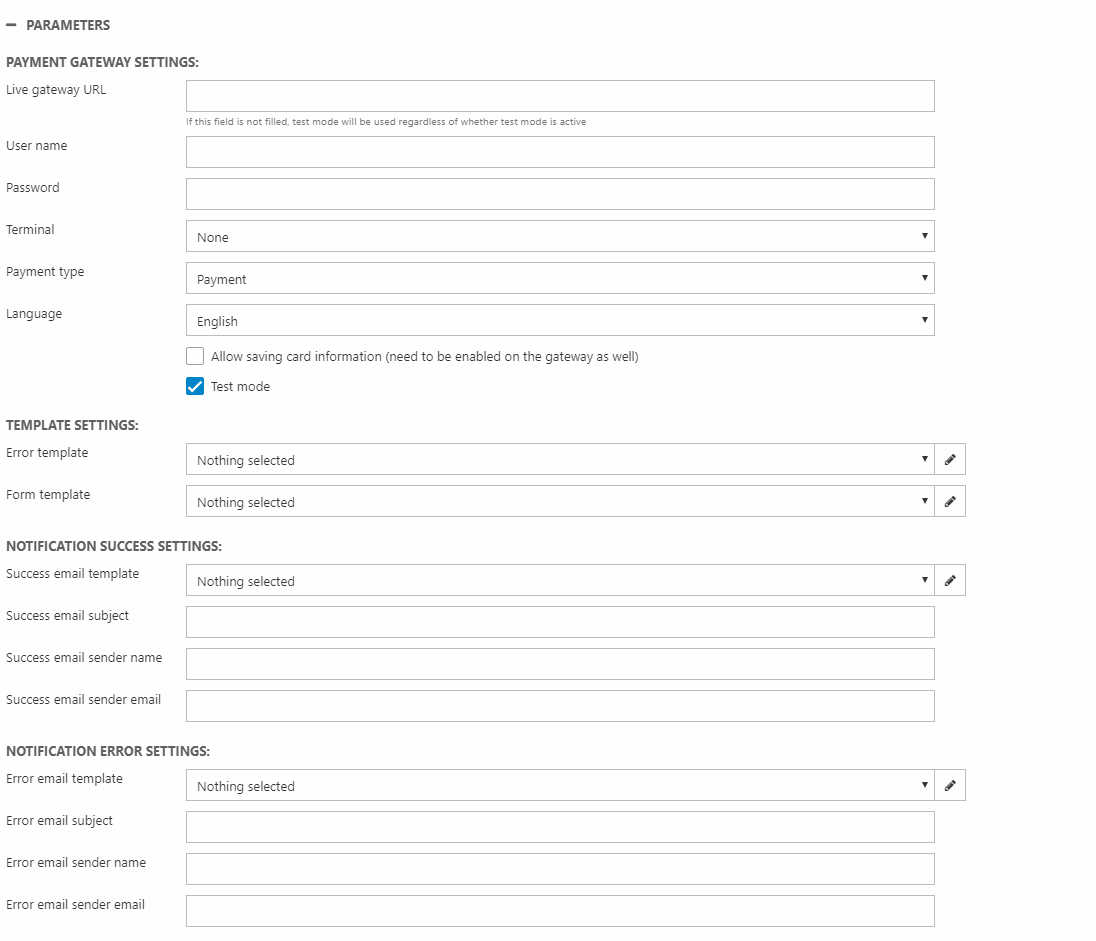The Notification success and Notification error settings allow you to set up automatic email notification whenever a payment has been processed with either a success or an error message.