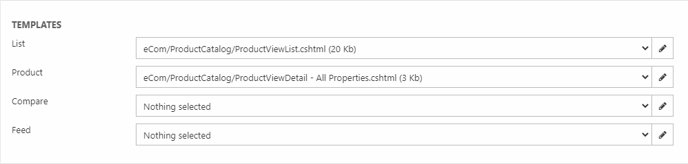 The Templates section (Figure 5.1) controls how the products returned by the query are presented in frontend.