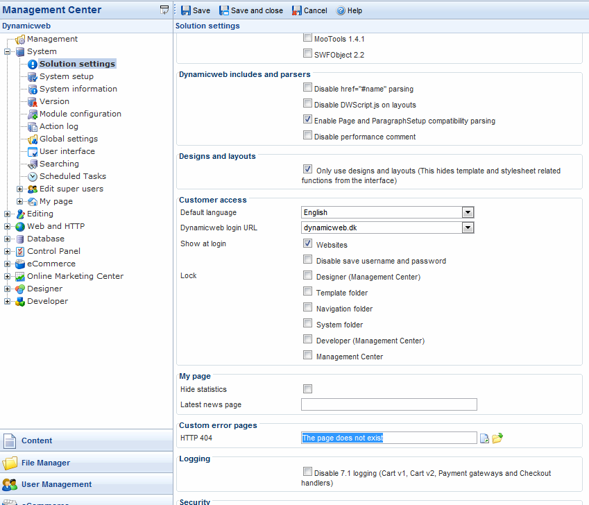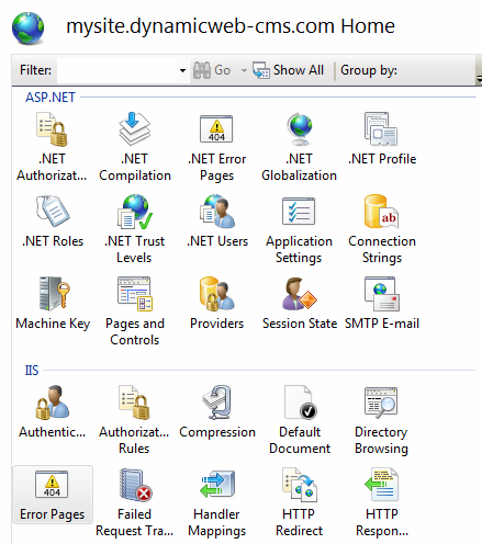 Once the IIS has been set up, you can customize your Dynamicweb solution to display either a page on your website or an HTML file from the file archive instead of the standard HTTP 404 error page.
