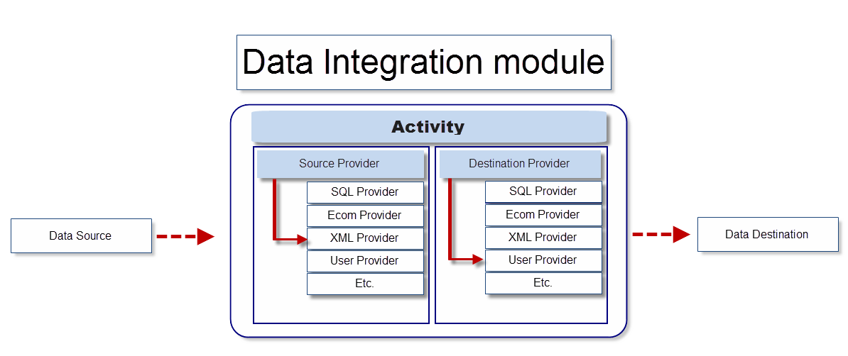 In general terms, the module works by pairing a data source with a source provider, then selecting a destination provider appropriate to the intended data destination –see Figure 2.1.