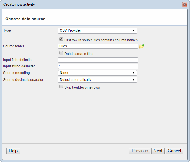 When used as a source provider, the following settings are available for the CSV Provider (Figure 2.1).