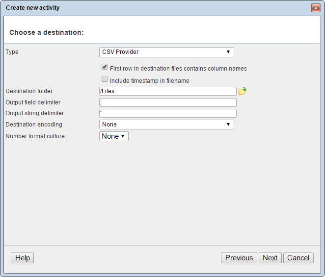 When used as a destination provider, the following settings are available for the CSV Provider (Figure 3.1).