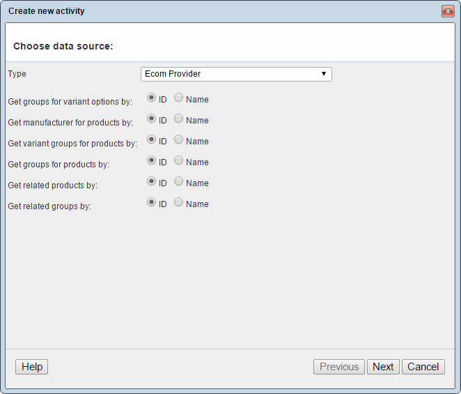 When used as a source provider, the Ecom Provider allows you to specify whether you want the ID or the Name of e.g. the manufacturer column to be exported (Figure 2.1).