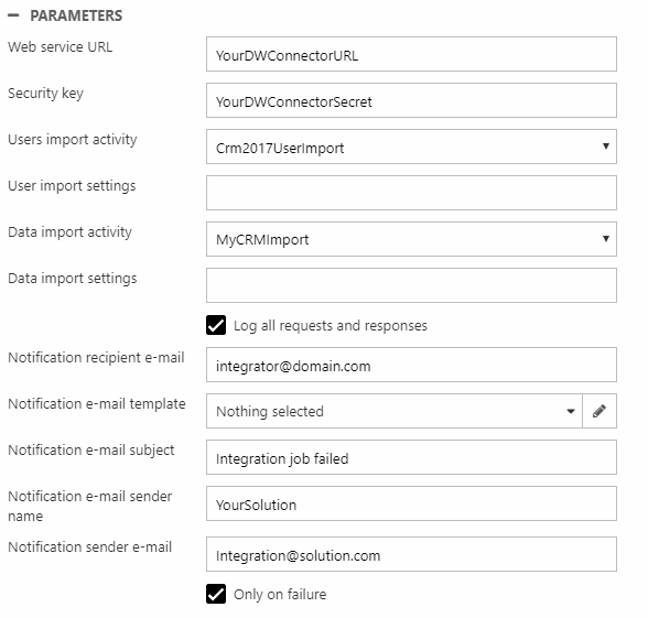 It is important that you run the Data Integration activities via this batch integration task, or you will not properly connect to the DynamicwebConnector service, and your import will not behave as intended (old date, no updates, and fail without an error).