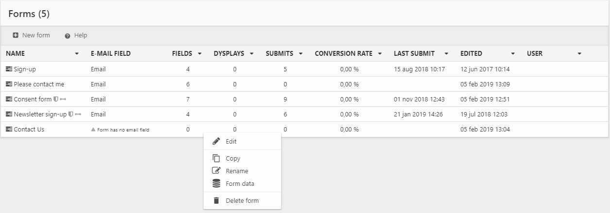 - Go to Apps > Forms for Editors and click New form in the toolbar