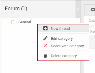 To create a new thread, either select a category and click New thread in the toolbar, or right click a category and select New thread from the right-click menu.