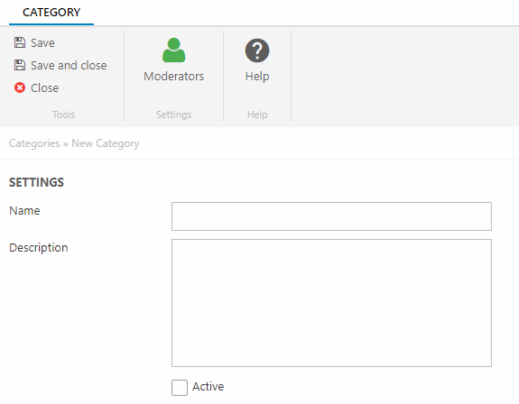 To create a new category, click New category in the forum content toolbar (Figure 11.1).