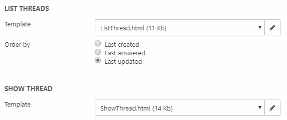 - Select a sort order, controlling which threads should be shown at the top – last created, last answered, or last updated