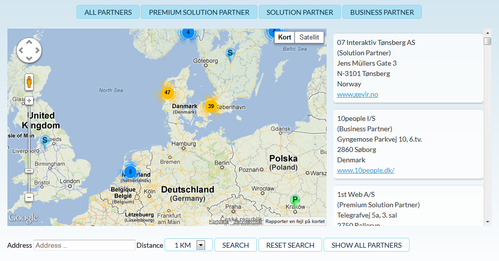 • Toggling and configuring a location list for the map – a list of all your locations which centers the location on the map when clicked