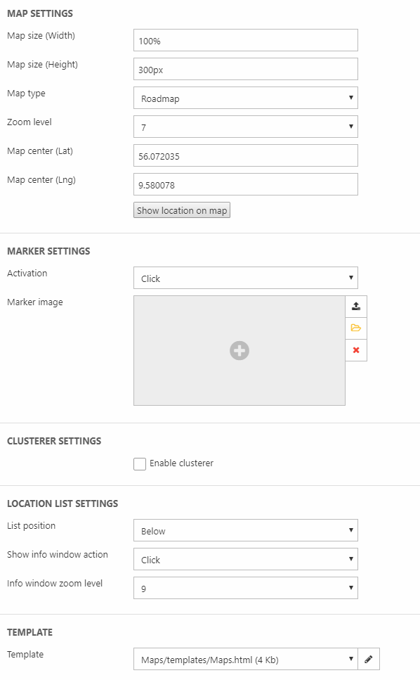 • Specifying how map markers should be activated and rendered in frontend and optionally selecting a custom marker image