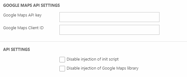 With the advanced configuration options for the Maps app (Settings > Control Panel > Maps), you can set the default Google API key and client ID and find settings regarding batch updates.