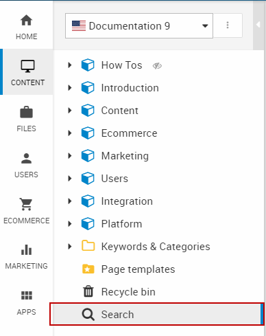 From the Content tree you have access to the content search node (Figure 1.1), which can be used to search through your content.
