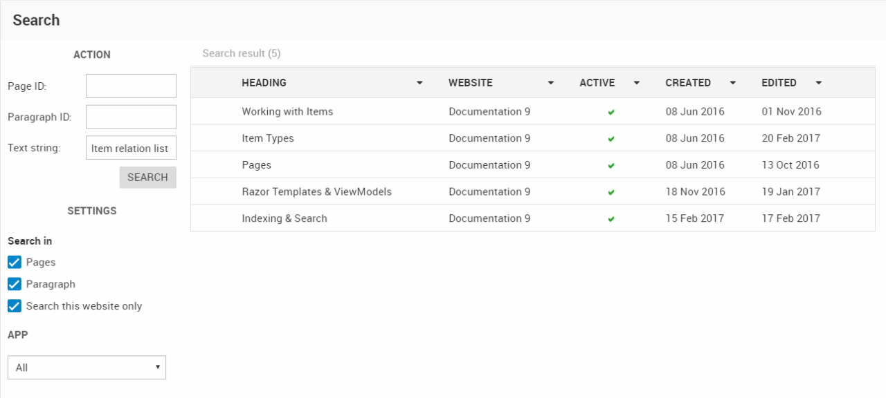 - (Optional) Use the Search in checkboxes or the App dropdown to limit the type of content your search in
