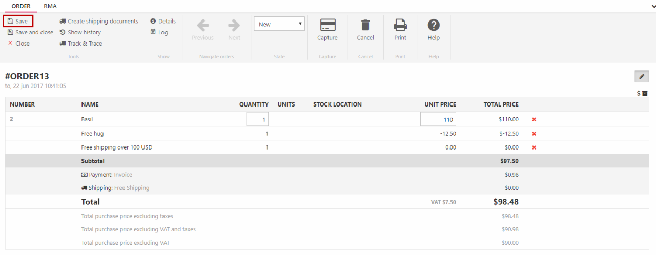 To make your order details less confusing, consolidate the taxes into a single order line by going to Settings > Ecommerce > Advanced configuration > General and activating the Taxes in backend settings (read more about the settings here).