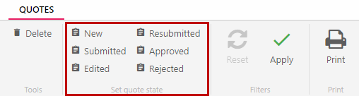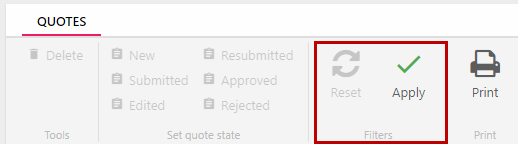 From the Quotes list toolbar (Figure 3.1) you can filter and search the Quotes list.