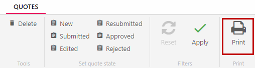 If you want to print one or more quotes for offline use, simply select the quote(s) and click the Print button in the toolbar (Figure 4.1).