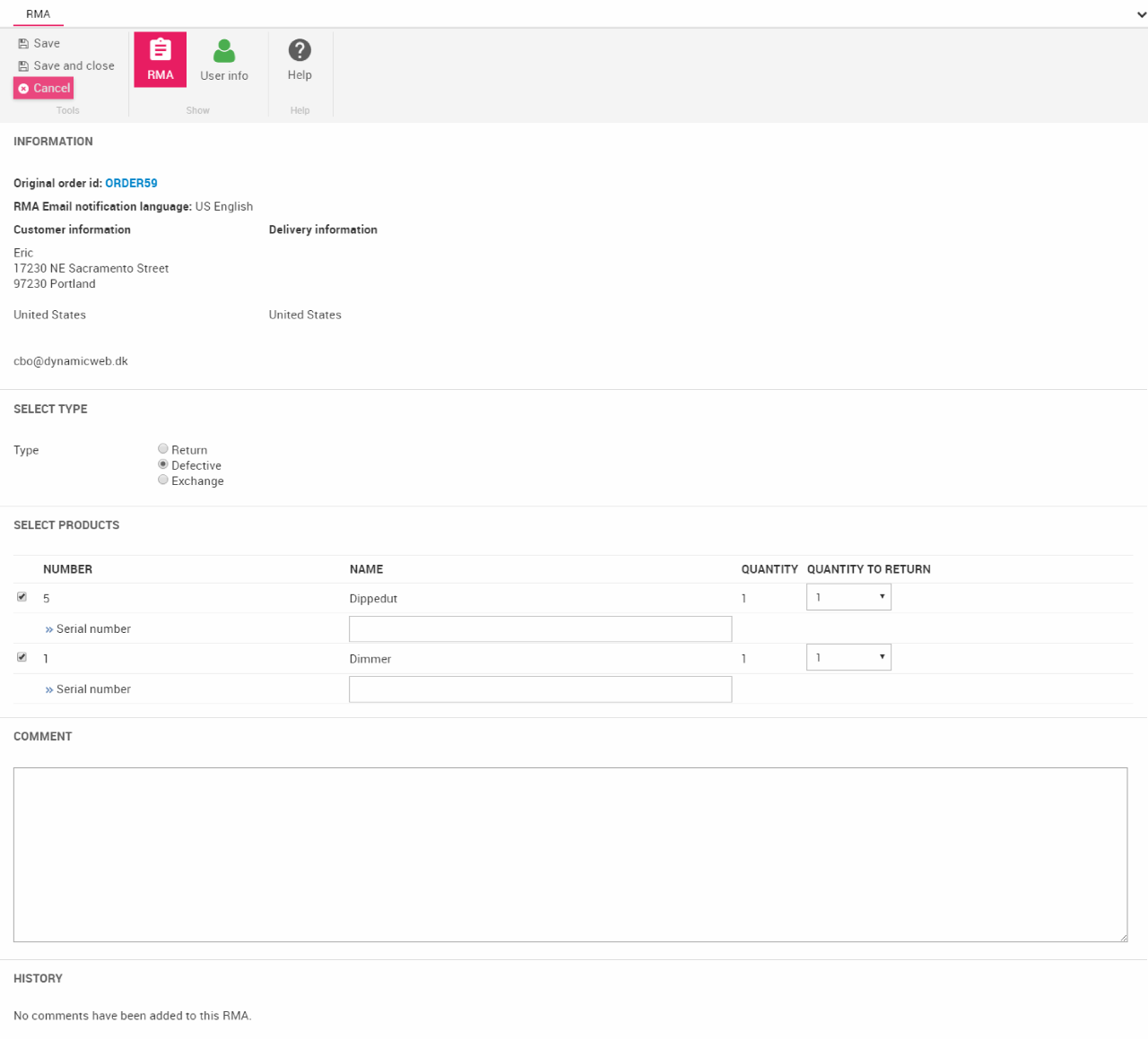 Dynamicweb Ecommerce comes with a dedicated RMA system, allowing you to manage such returns with a minimum of hassle.