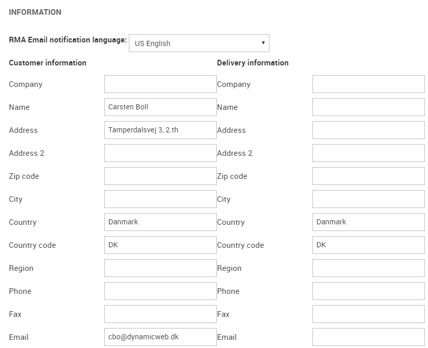When working with RMAs, it can be useful to inform customers and employees alike when an RMA is created or closed, or when it enters a new state. Happily, the Dynamicweb RMA management system comes with a built-in engine for handling email notifications to customers and employees.