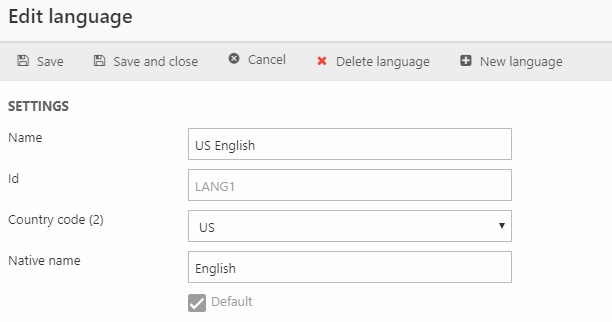 When you’ve created the languages, countries and currencies necessary for your setup, make sure you set a default country, language and currency on each website or language layer. Not doing so is one of the most common sources of WTFs in Dynamicweb.