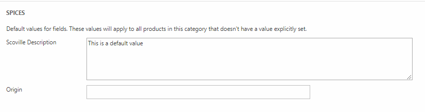 A category field collection is used to add a set of custom fields to a subset of products – e.g. bikes or shirts. Once created, this type of product category is attached to a product group, extending all the products inside the group with the fields in the product category.