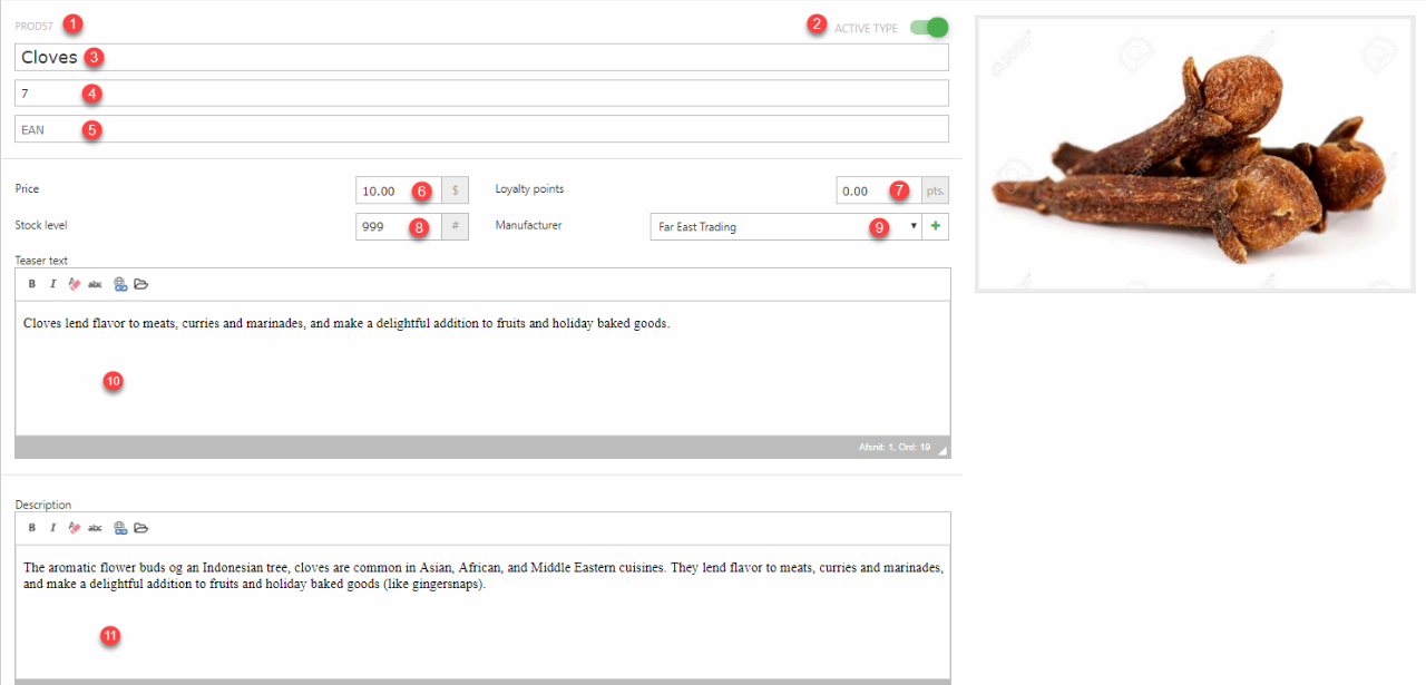 - Enter a description - a helptext which is shown next to the product field when editing a product