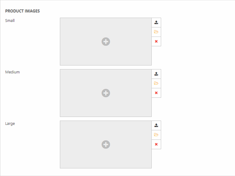 The Product Images section on a product card contains three standard fields – called Small, Medium, and Large – for adding images to a product (Figure 2.2).