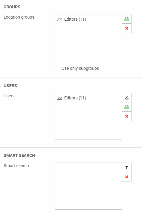Under Groups, Users and Smart search (Figure 3.1), you can select which users/groups/smart search groups you want to show on the map, depending on whether they have an address/city and country registered. If you want to use only the subgroups for a user group, select Use only subgroups.