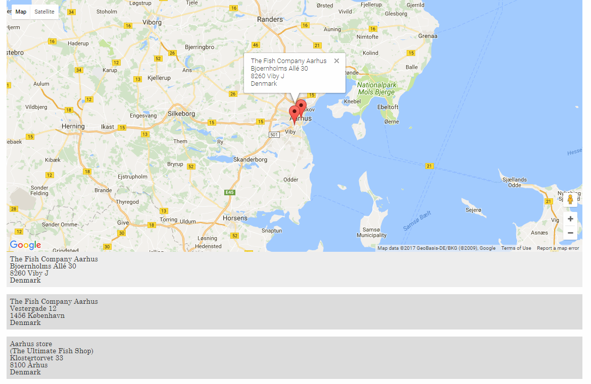 There’s also a search function implemented, that allows a frontend user to enter an address, a name or just a city, and search within different radii.