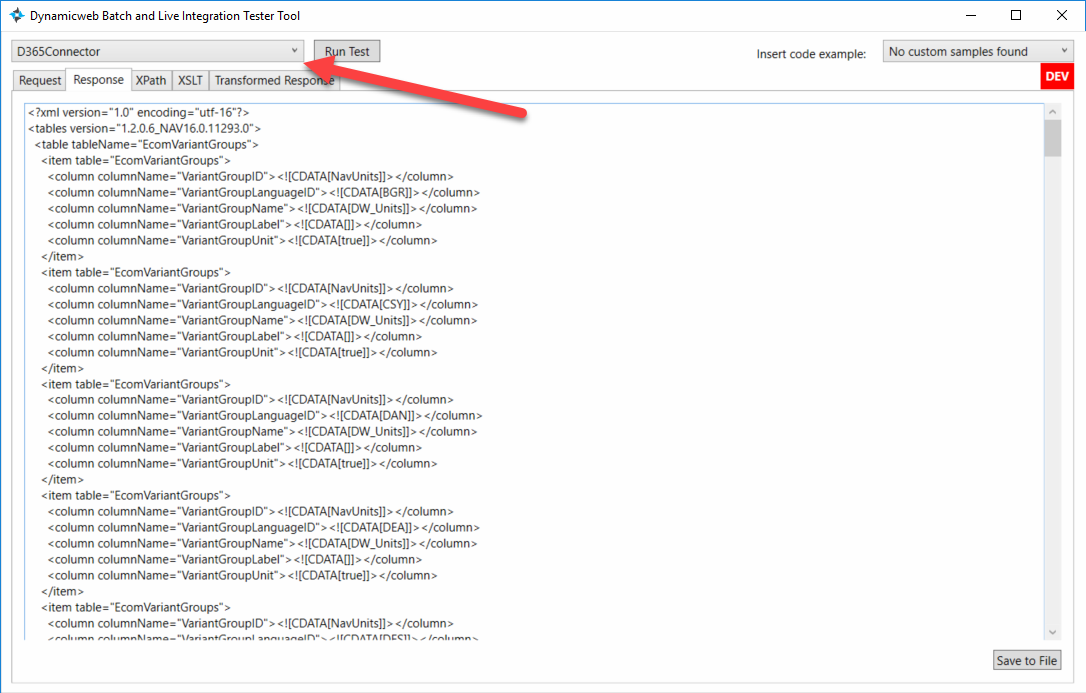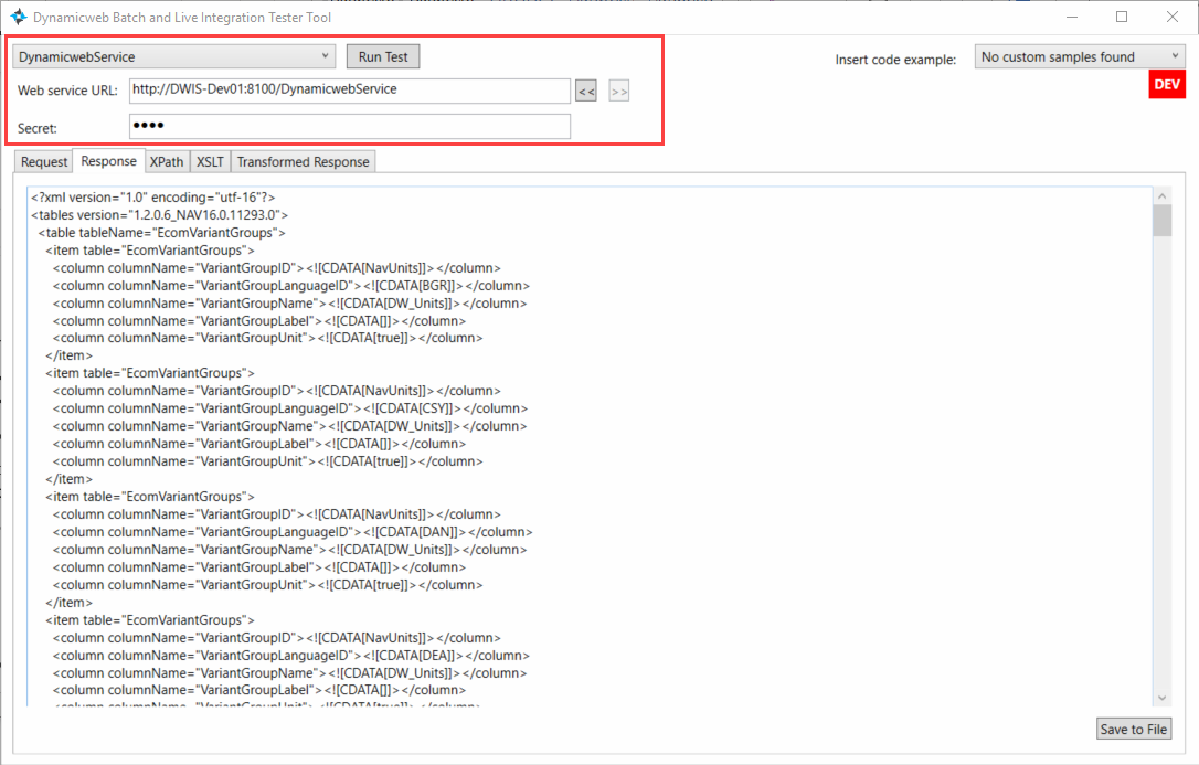 The Dynamicweb Connector test tool is a small and very useful tool which allows you to submit requests and receive responses from web services – either: