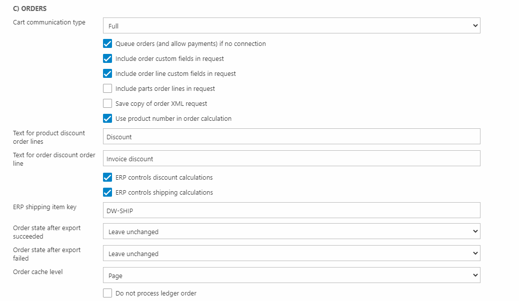 - To have D365 BC/NAV handle the calculations, check the ERP controls discount calculation checkbox in section C of the live integration settings