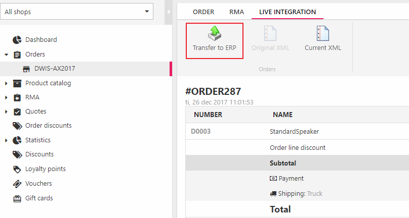 After a short while you either get a notification that the orders have been transferred correctly, or you get an error message. The button is also available from both the order details page.