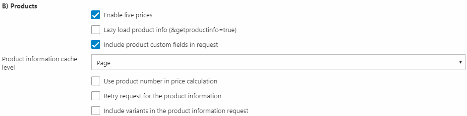 The Products section (Figure 4.1) contains settings related to retrieving live product information.