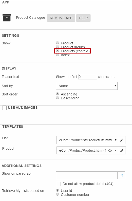 - Select the Products (context) mode under show settings (Figure 4.1)