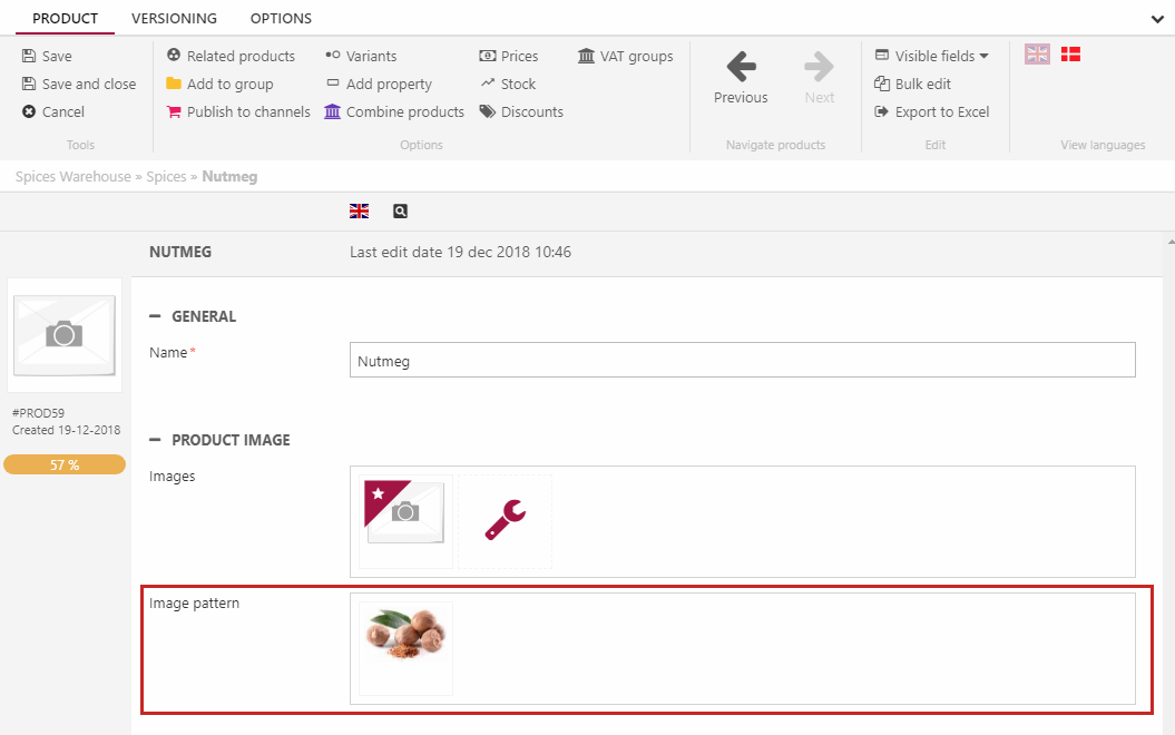 • Set it as the default image – a default image is inherited by all variants and language versions unless a different default image is explicitly set there. A default image is typically used in frontend as the image on product lists, and as the first image shown on a product details page.