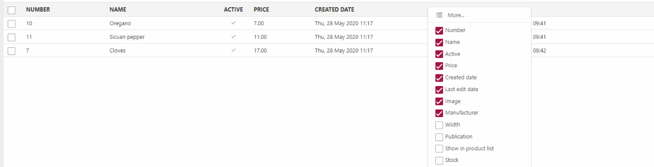 As you can see from the screenshot, the Multi-edit view mode has some information available by default – the Product ID, the default image (if set), and the creation date and last update date.