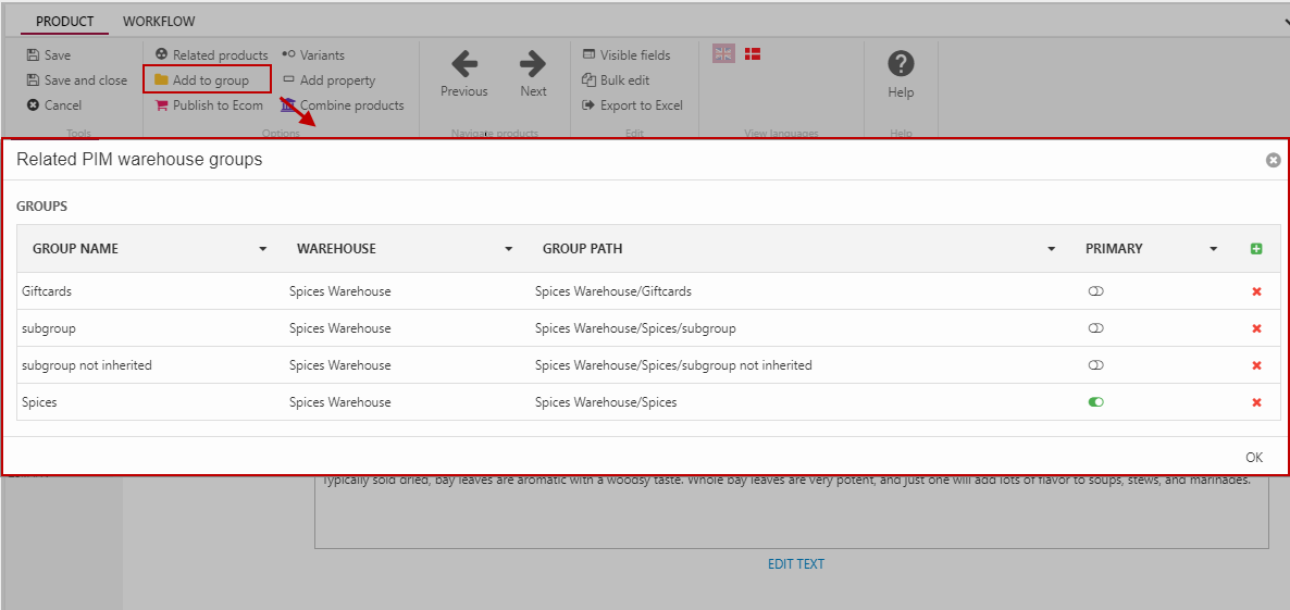 From all view modes you can select products and use the Add to group button manage group membership (Figure 4.1).