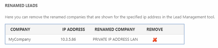 From the renamed leads area, you can remove any custom company names you have created for a specific IP address (Figure 16.1).