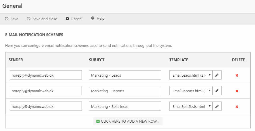 You can find the most general settings regarding Marketing under this section. Currently, you can only set up email notification schemes.
