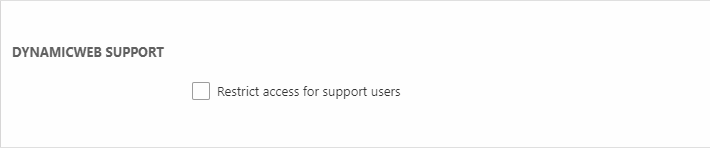 The Dynamicweb support section (Figure 5.2) makes it possible to remove angel-access to the solution. This includes all support-staff at Dynamicweb.
