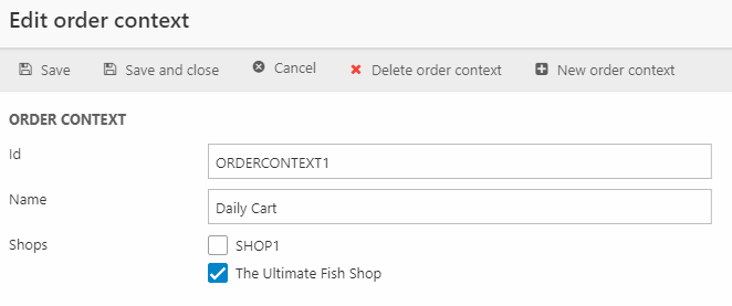 Once an order context has been created it can be selected on a shopping cart app, in effect making that cart the context cart. It will function as any other shopping cart, with the exception that you have to include an OrderContext parameter in the cart command used to add products to this cart:
