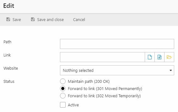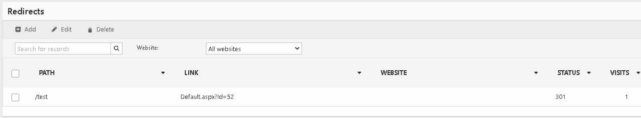 To add a redirect click Add in the toolbar and configure the redirect (Figure 1.2).