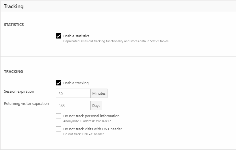 • Check Do not track visits with DNT header to not track DNT=1 headers