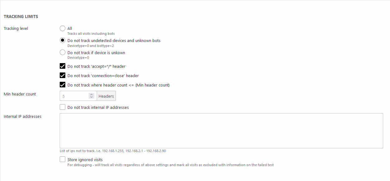 The Tracking limits section is used to further configure the behavior of the Tracking framework (Figure 2.1).